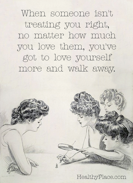 "When someone isn't treating you right, no matter how much you love them, you've got to love yourself more and walk away."