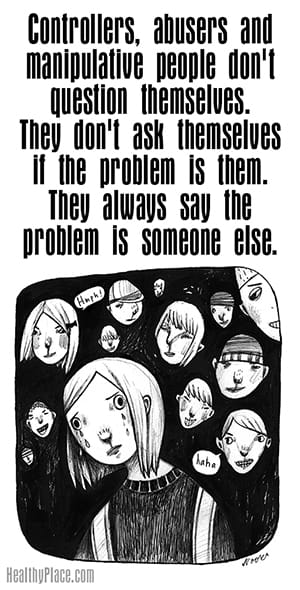 "Controllers, abusers and manipulative people don't question themselves. They don't ask themselves if the problem is them. They always say the problem is someone else."